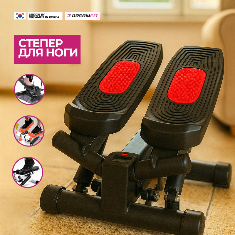 Домашний мини-степпер – это эффективный кардиотренажёр, который имитирует ходьбу по лестнице и прорабатывает мышцы ног, ягодиц и корпуса. Оснащён монитором для отслеживания шагов, калорий и времени тренировки. Позволяет регулировать уровень нагрузки, адаптируя тренировки под ваш уровень физической подготовки. Компактный и мобильный, легко помещается в квартире и может использоваться даже на улице!