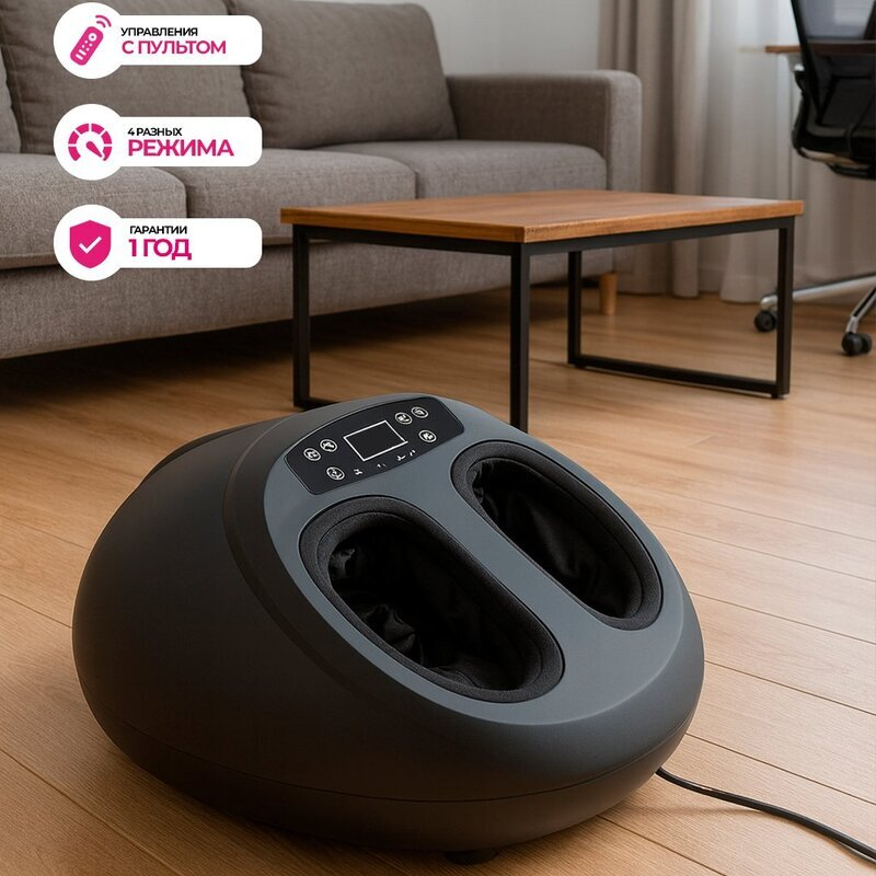 Снимите усталость и напряжение с помощью электрического массажера для ног! Этот аппарат сочетает роликовый и компрессионный массаж с функцией инфракрасного подогрева, улучшая кровообращение и расслабляя мышцы. Воздушные подушки и массажные ролики воздействуют на биологически активные точки, обеспечивая максимальный эффект. Нескользящие ножки, съемные тканевые чехлы, автоматическое отключение через 15 минут – удобство и безопасность в каждой детали! Компактный, стильный, с регулируемым наклоном – отличный подарок для родных и коллег. Дарите заботу и комфорт!