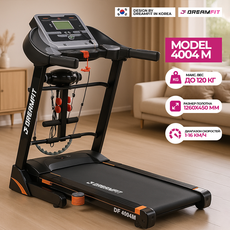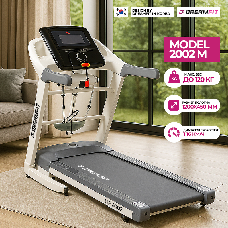 Новый ритм, новые возможности, новый вас! Представляем вам беговую дорожку Модель-DF-2002M от Dreamfit - уникальное сочетание инноваций и комфорта, чтобы каждая ваша тренировка стала настоящим моментом трансформации! Позвольте себе погрузиться в мир бесконечных возможностей с максимальным весом пользователя до 120 кг. Независимо от ваших целей и начального уровня подготовки, эта дорожка примет вас с открытыми объятиями. Удивительная беговая поверхность 120x45 см создана, чтобы ваши шаги были свободными, естественными и полными энергии. Двигайтесь, как будто вы стоите на своей тренировочной арене! Мощный DС мотор 3.5 HP позволит вам перенести границы своей выносливости. От скорости 1 км/ч до увлекательных 16 км/ч - каждая сессия на этой дорожке становится вашим персональным вызовом. Покорите виртуальные вершины с диапазоном наклона от 0 до 18%. Пусть каждый наклон будет шагом к вашей фитнес-цели, а каждый спуск - шансом отпустить напряжение. Функции защиты от аварийной остановки обеспечат вашу безопасность в каждой тренировке. Доверьте эту заботу дорожке, и пусть вы полностью сконцентрируетесь на своих достижениях. Восхитительная Hi-Fi система с MP3 аудио входом и USB портом позволит вам настроить атмосферу тренировки и окунуться в мир музыки, который вдохновит вас на большие победы. Информационный LCD дисплей диагональю 5 дюймов - ваш главный спутник в пути к фитнесу. Отображение скорости, наклона, времени, расстояния, калорий и пульса руки поможет вам контролировать каждый шаг к успеху. Дорогой друзья, ваше фитнес-путешествие начинается здесь, с Dreamfit Модель-DF-2002M. Сделайте первый шаг к лучшей версии себя и дайте вашим мечтам взлететь выше, чем когда-либо!