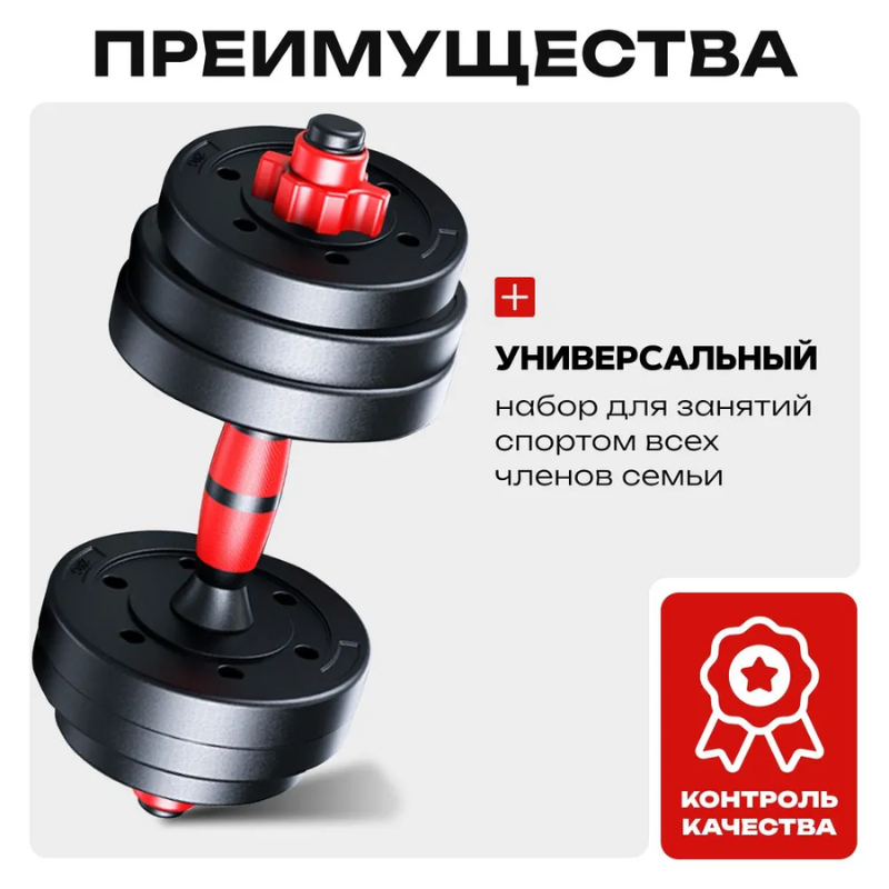 Создайте идеальные условия для тренировок с разборными гантелями 20 кг! В комплект входят две гантели по 10 кг, которые можно регулировать по весу. Удобные прорезиненные ручки, прочные диски и надёжная фиксация обеспечивают комфорт и безопасность во время занятий. Подходят как для домашних тренировок, так и для зала!