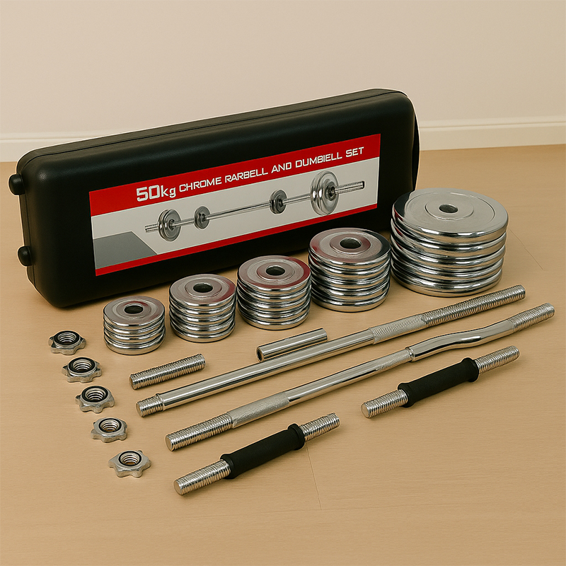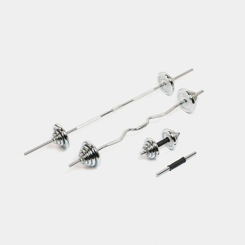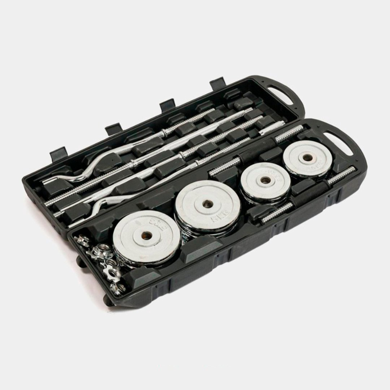 Повысьте эффективность тренировок с премиальным набором разборных гантелей и штанг от Dreamfit! В комплект входят: ✔ Изогнутая и прямая штанги ✔ Две гантели с прорезиненными ручками ✔ Соединительная труба для узкого хвата 20 дисков (от 0,5 до 5 кг) позволяют гибко регулировать вес, а надежные звездообразные замки (гайки Вайдера) обеспечивают безопасность. Все элементы выполнены из прочного хромированного металла, а насечки на грифах обеспечивают надежный хват. Удобный пластиковый кейс для хранения и транспортировки в комплекте. Выбирайте качество и универсальность!