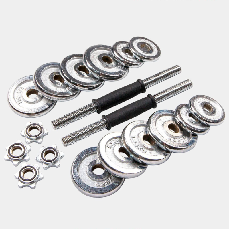 Набор разборных гантелей 25 кг идеально подходит для тренировок дома и в спортзале. ✔ Прочные хромированные рукоятки с насечкой для надёжного хвата ✔ Регулируемый вес – подбирайте нагрузку под свой уровень ✔ Надёжная система фиксации с замками в форме звезды (замки Weider) ✔ Идеален для тренировки рук, плеч, груди и спины