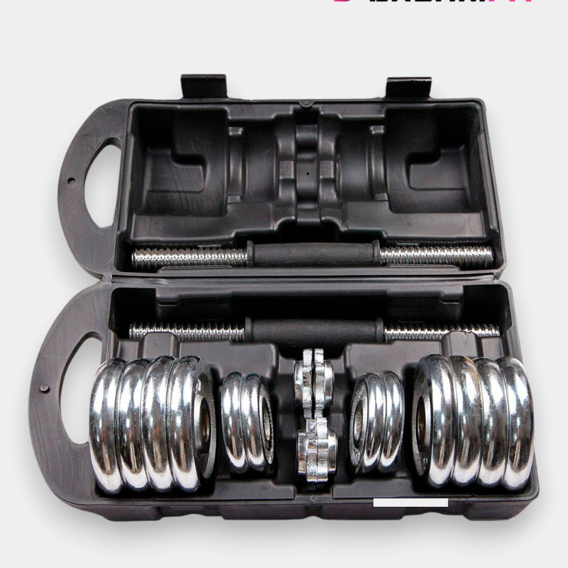 Профессиональный набор разборных гантелей Dreamfit весом 20 кг – отличное решение для домашних и спортивных тренировок. ✔ Прочные хромированные грифы с насечками для надежного хвата ✔ Регулируемый вес благодаря блинам от 0,5 до 5 кг ✔ Надежная фиксация с помощью звездообразных замков (гайки Вайдера) ✔ Идеально подходит для тренировки рук, плеч, груди и спины Комплектация: 🔹 Грифы – 2 шт. 🔹 Диски – 12 шт. (разного веса) 🔹 Замки-фиксаторы – 4 шт. 🔹 Материал: Хромированный металл 🔹 Общий вес: 20 кг Универсальный и удобный комплект для эффективных тренировок!