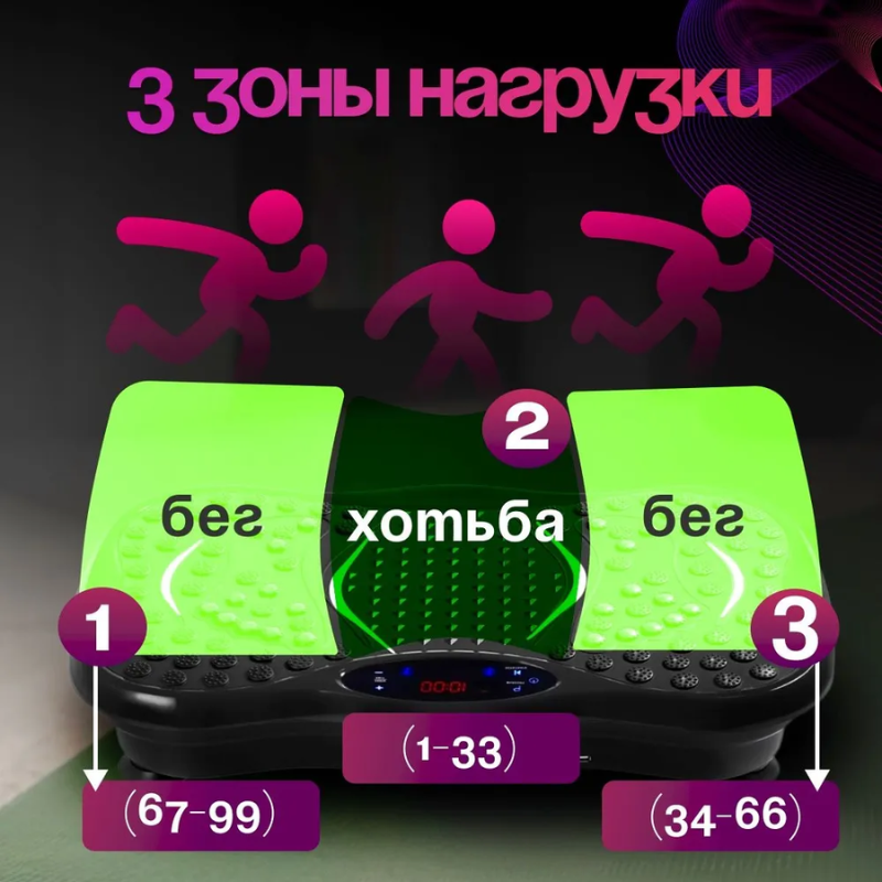Хотите похудеть и укрепить мышцы, не выходя из дома? Виброплатформа с 120 уровнями скорости стимулирует все тело, уменьшает жировые отложения и улучшает баланс. Бесшумный мотор позволяет тренироваться под музыку, не мешая окружающим. LED-дисплей показывает время и скорость, помогая удобно контролировать тренировку. Мощность – 300 Вт, выдерживает до 180 кг. Достигайте фитнес-целей легко и с комфортом!