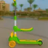 Современный детский трёхколёсный самокат 210-765 с блестящими колёсами и регулируемой ручкой по высоте.